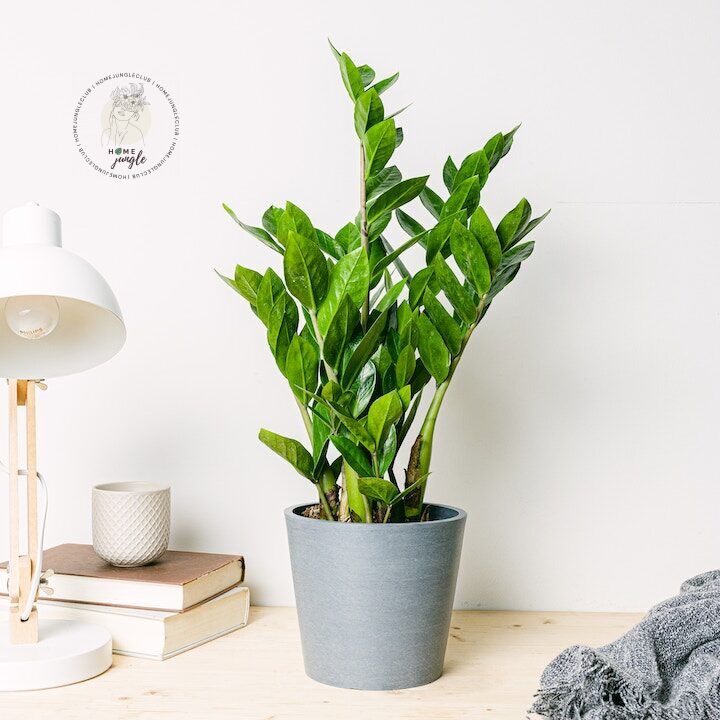 - Zamiokulkas nie jest zbyt wymagający co do naświetlenia, jest w stanie przetrwać nawet w przestrzeniach bez naturalnego światła. Podlewamy go okazjonalnie, dopiero gdy gleba wyraźnie przeschnie, wystarczy raz na dwa tygodnie. Uwaga, nie należy zraszać jego liści. Odpowiednie jest dla niego podłoże do kaktusów i sukulentów Home Jungle Club.